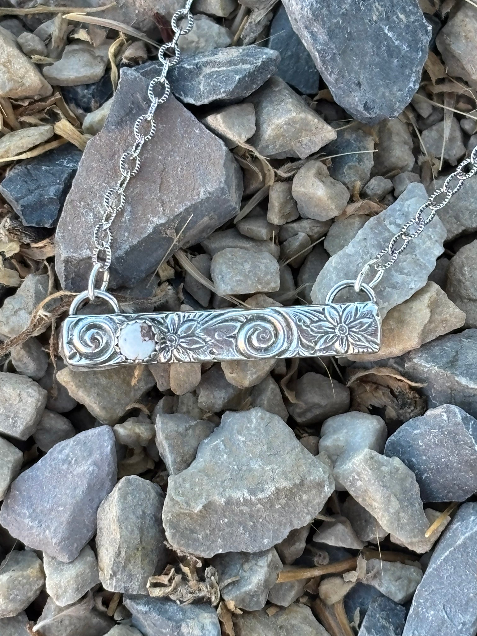 Perfect everyday sterling silver bar with a splash of color. You have the option of turquoise or Wild Horse stones